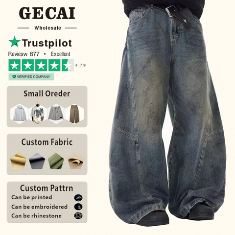 GECAI primavera 2025 Vintage blu di alta qualità Wash Denim da uomo pantaloni a Banana Scimitar Jeans con cuciture ricurve Jeans Jeans per uomo