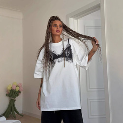 T-shirt da donna Oversize a tracolla con stampa di biancheria intima in pizzo Sexy da donna